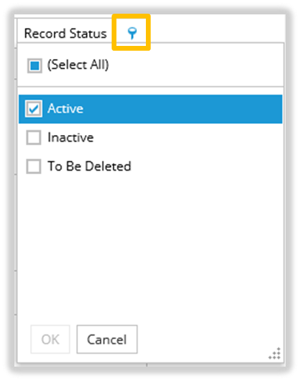 In the ‘Status’ Column Header of the Record List, click the