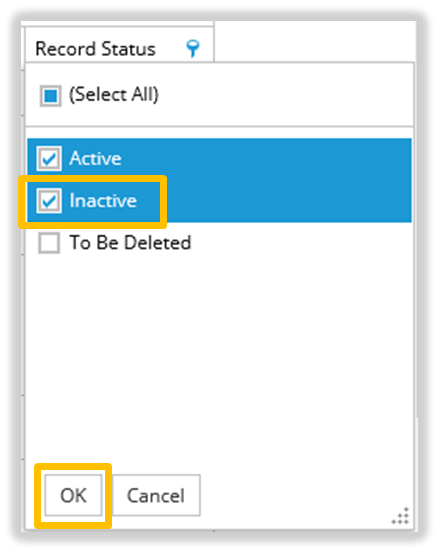 The Inactive Records will now be displayed in the list.