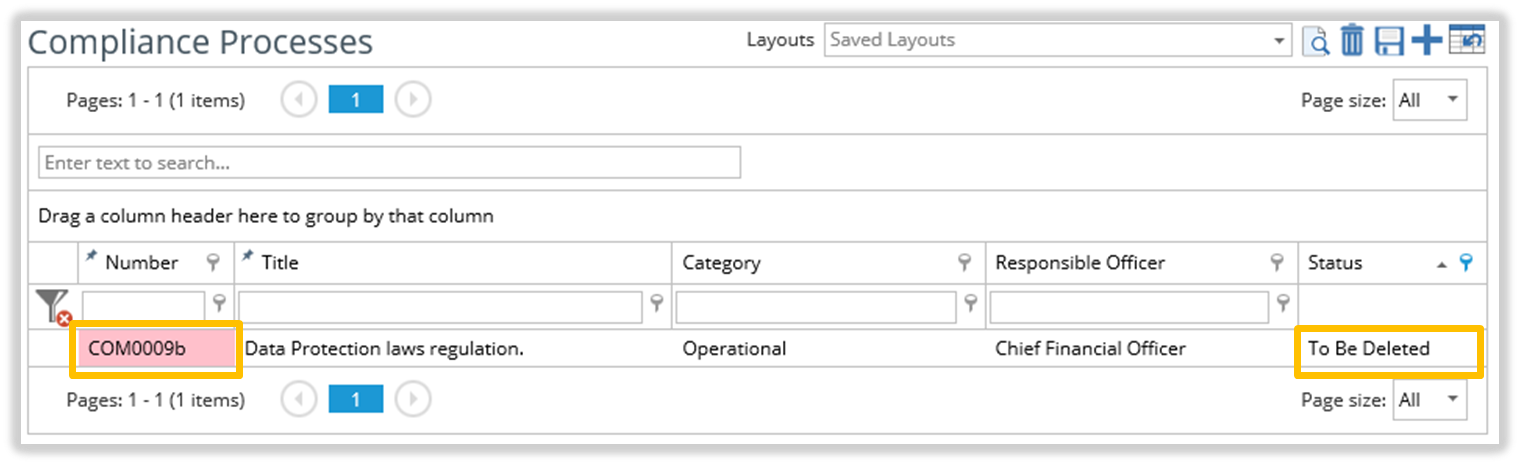 Inactive records are excluded from lists by default. You can include records with an Inactive status in Compliance, Risk and KRI lists.