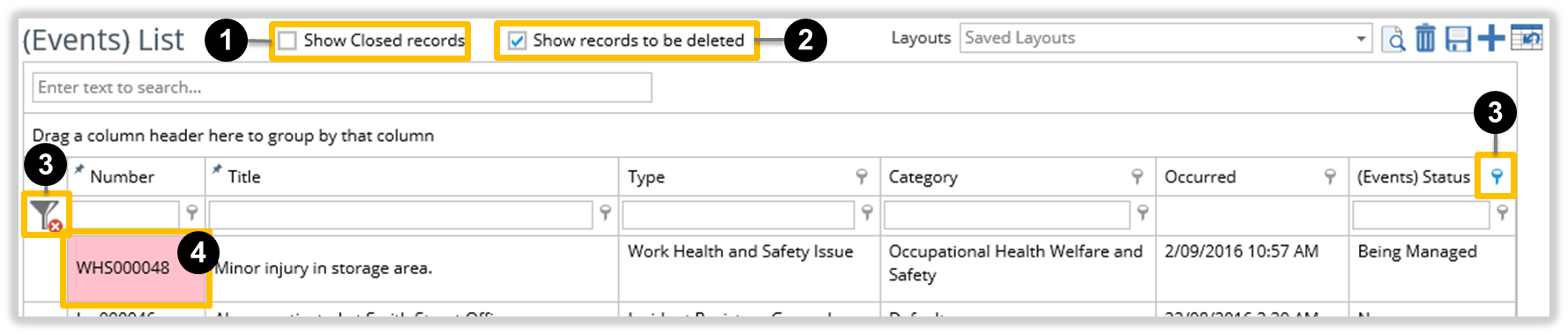 Select ‘Show Closed records’ 1 if you require to see these records.