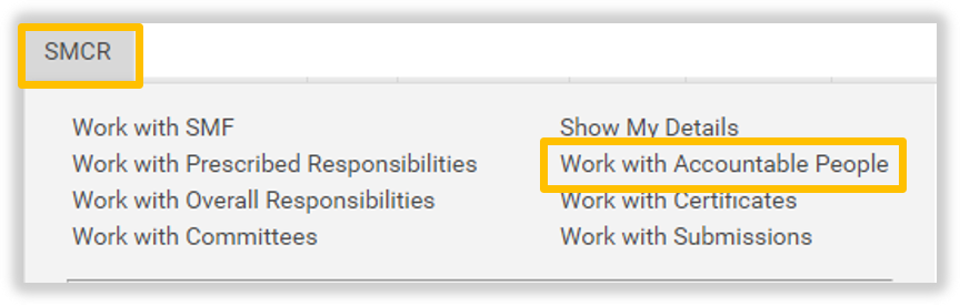 Note: The SMCR Module is only available to UK/EU Clients. The SMCR Module must be enabled in your system configuration for this menu option to appear.