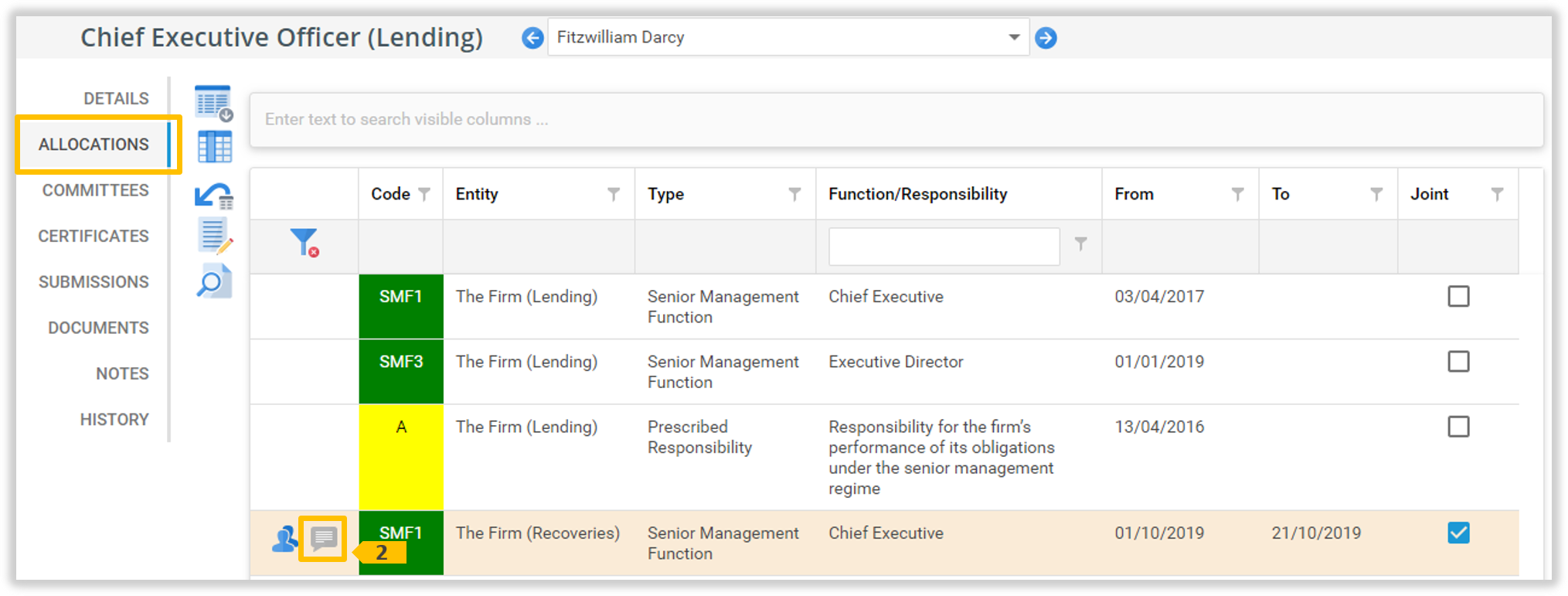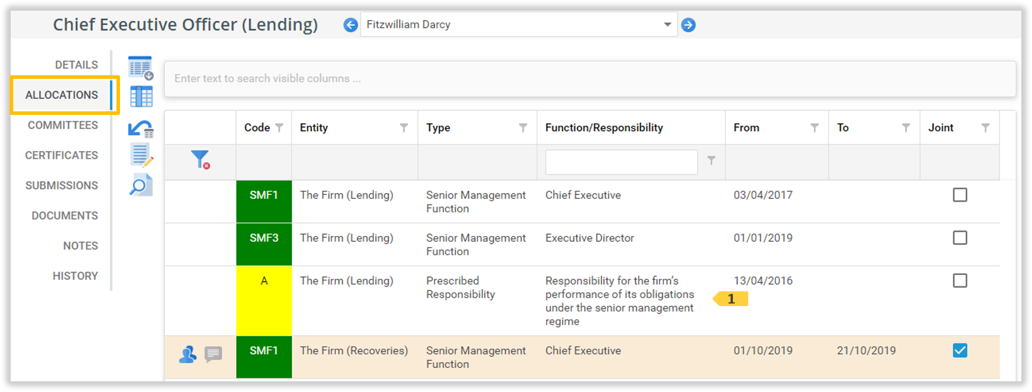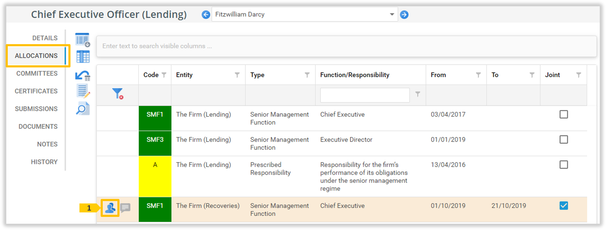 | 6 | Details Chevron | Click this icon to show, or hide, all SMCR records for this person. |