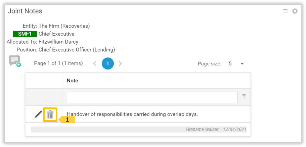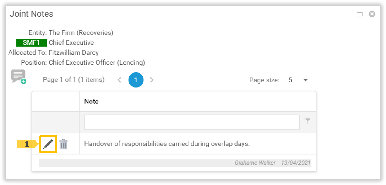 | 5 | ‘Joint Notes’ icon | Click this icon to display the Notes added for this Joint Responsibility. |