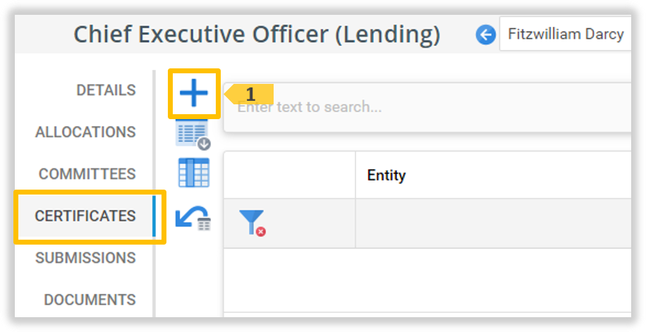 | 1 | ‘Enter_text_to_search…’ field | Enter text here to search and filter the visible columns in the Certificates 3 List. |