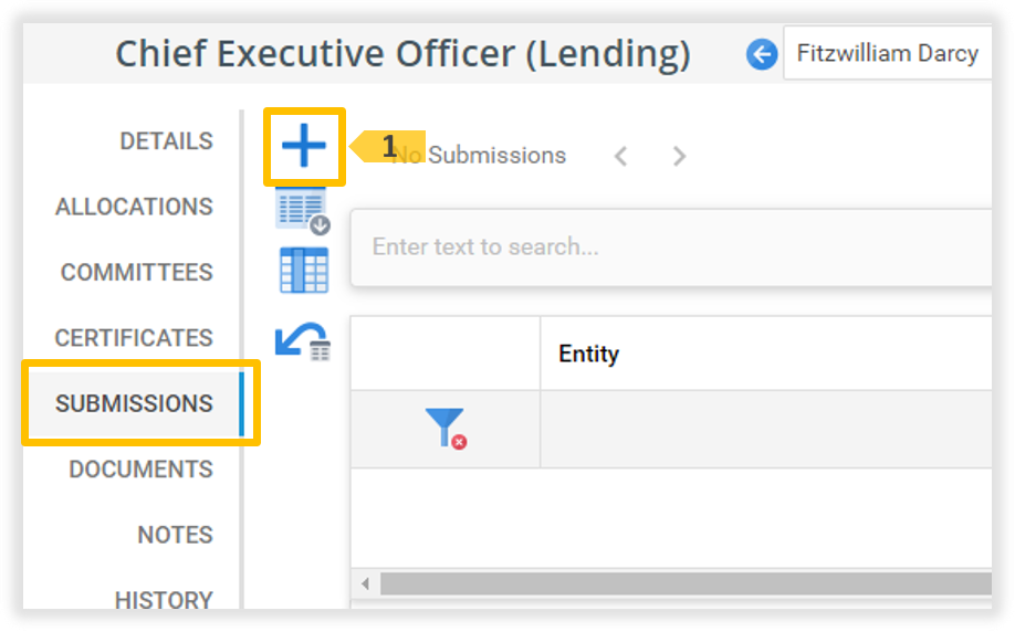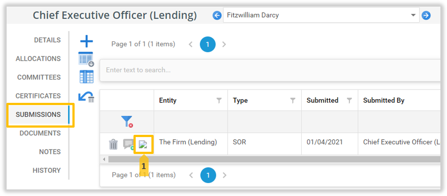 | 8 | ‘Add Submissions’ icon | Click this icon to create a new Submission for this Accountable Person. When added, the new Submission Record is displayed in the Submission 4 List. |