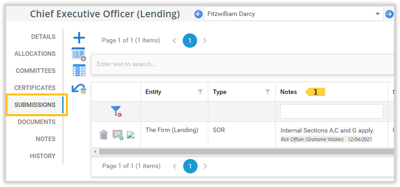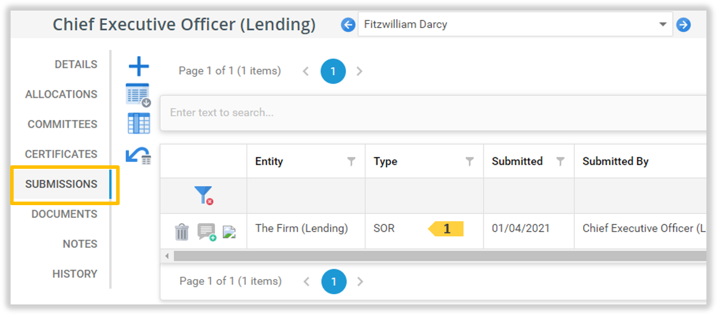 | 8 | A persons SMCR list | Displays the SMCR records for this Accountable Person. Click on a row to open that record. |