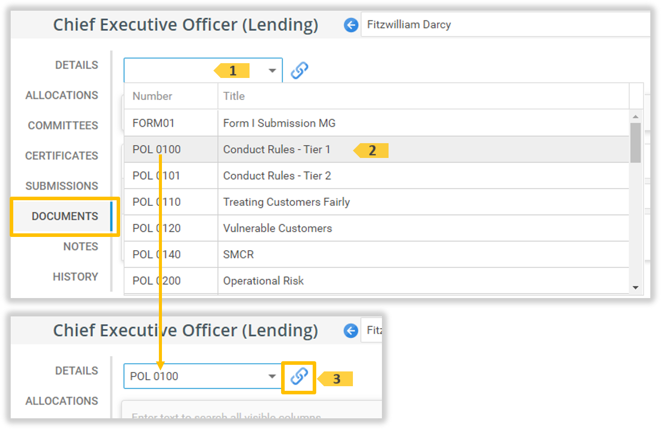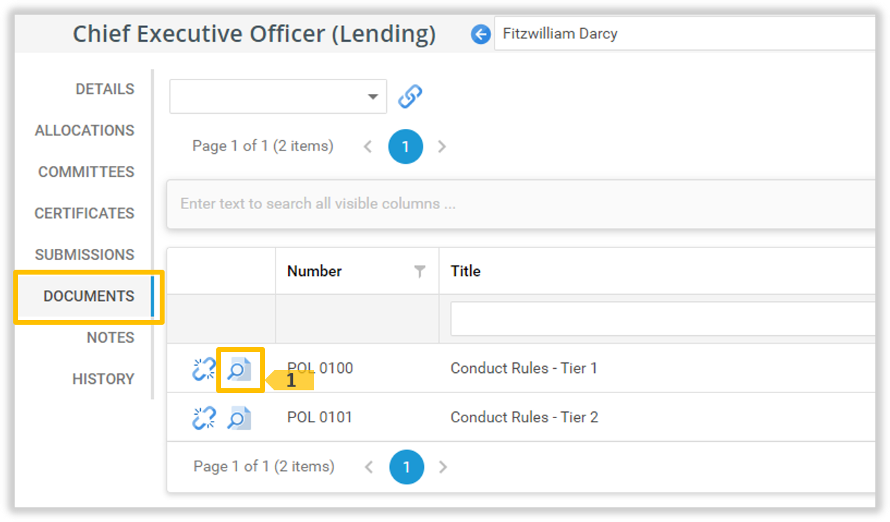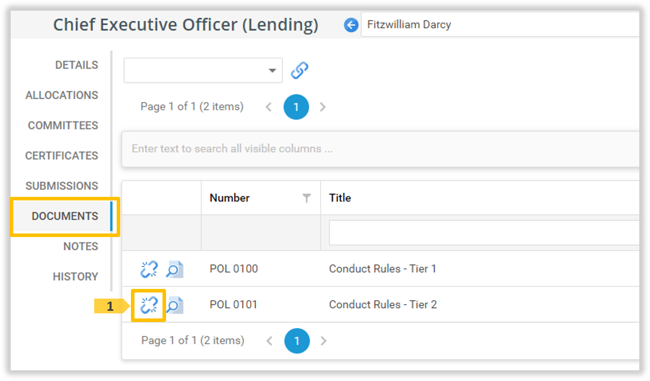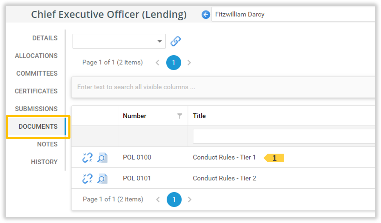 | 7 | ‘Documents’ list | This list displays all Documents linked to this Accountable Person. |