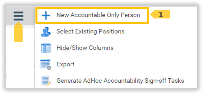 Hover over, or click, the Menu Options (hamburger) icon, click the New Accountable Only Person option.