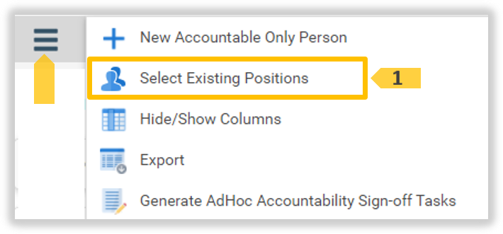 Hover over, or click, the Menu Options (hamburger) icon, click the Select Existing Positions option.